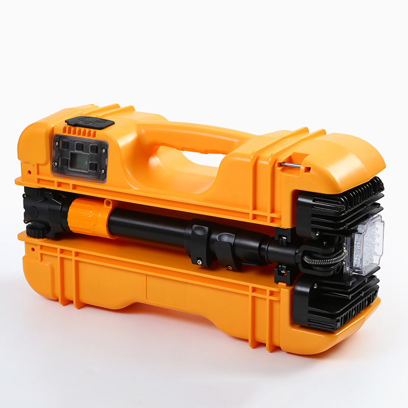 ◆灯头采用四节升降杆固定,升降杆升起高度1.5米,也可以收缩折叠实现一灯多用,升起可作为固定应急照明,灯头可进行水平360°旋转,垂直180°旋转调节照射方向,折叠可作为手提探照灯使用,升降杆和电池箱为一体式结构设计,使用方便灵活,满足不同用户的照明需求。